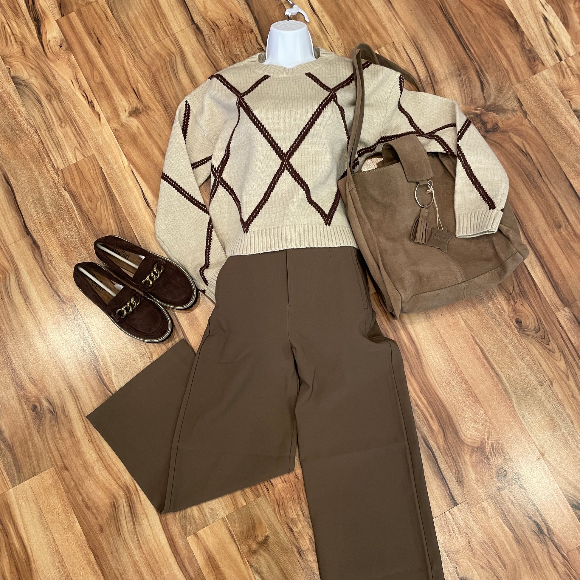 Cozy up this fall in our Diamond Patterned Sweater, where playful style meets comforting warmth. Its charming diamond design adds a touch of whimsy to crisp autumn days, making it the perfect companion for pumpkin patch adventures or cozying by the fire. Soft, snug, and full of fun—this sweater turns every chilly moment into a cozy celebration.
