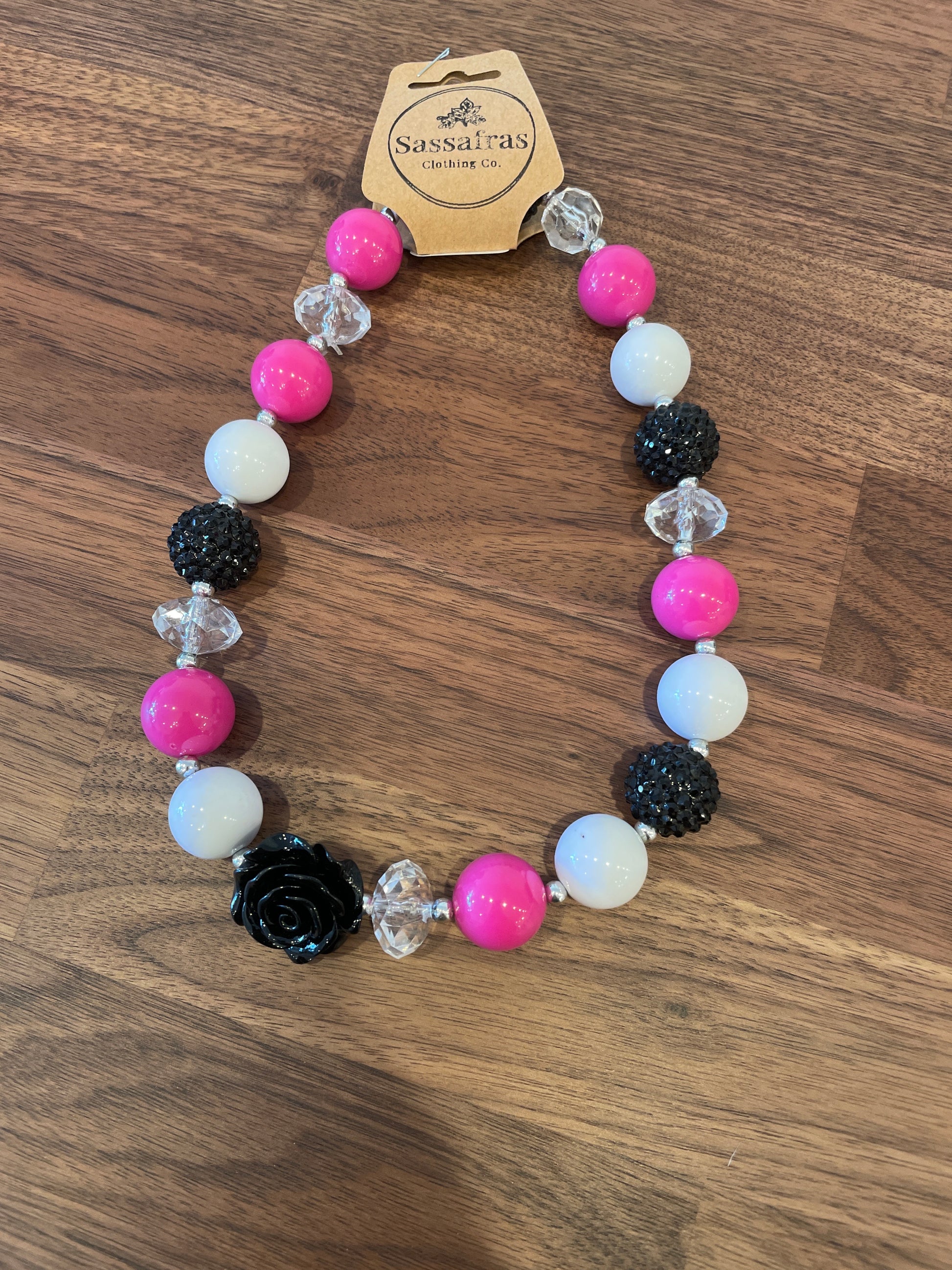 Kids Black Rose Bubblegum Bead Necklace